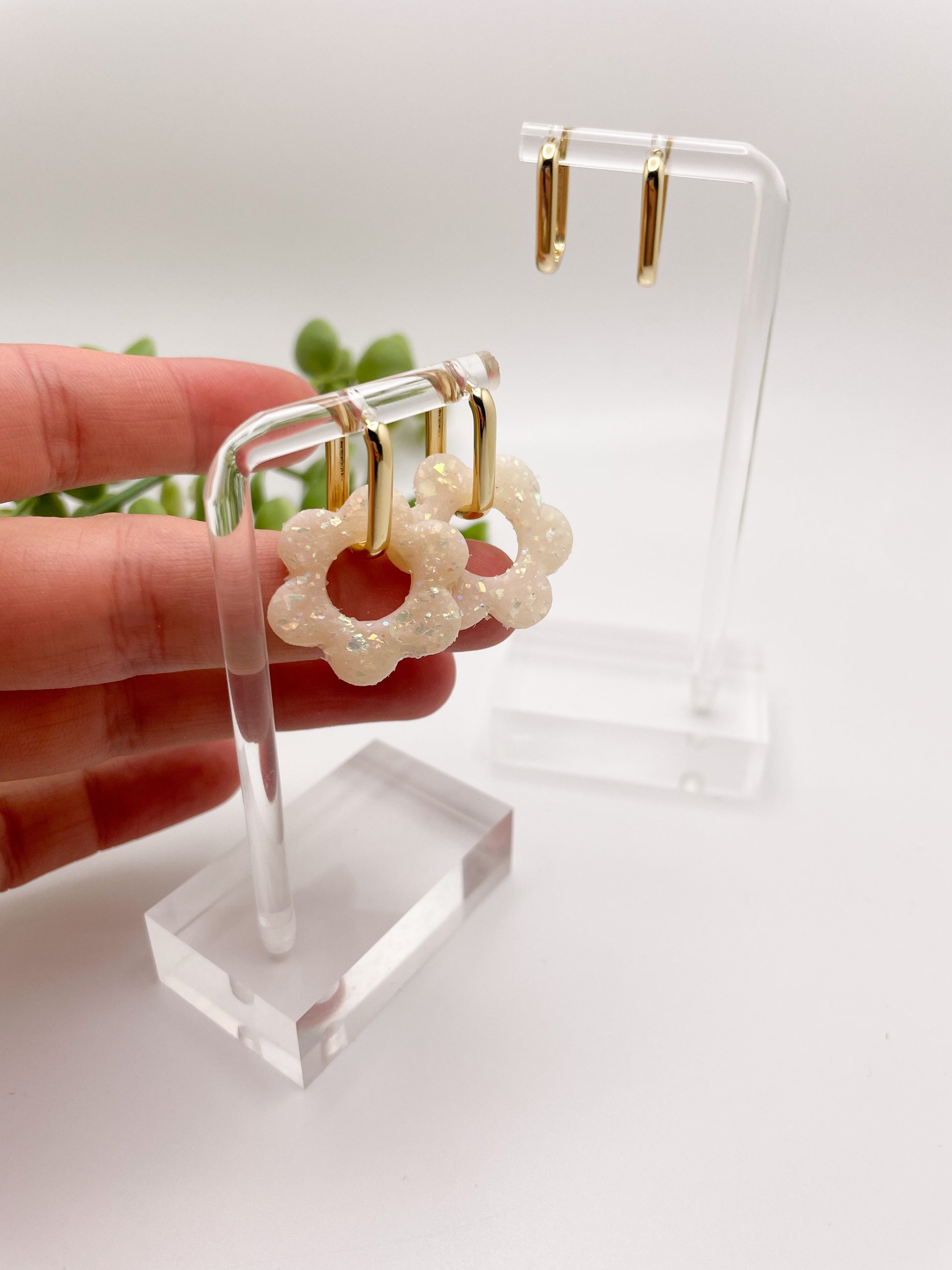 Say hello to my "Enchanting" Flower Huggie Earrings, 14k gold filled rectangle huge with a removable flower charm. It's a little reminder that the world shines brighter with your unique touch. These earrings flaunt delicate floral designs, each petal crafted to shimmer with a soft, alluring glow. They’re just the right amount of sparkle to light up a room, just like your one-of-a-kind magical spirit. And did I mention that they match EVERYTHING??! Part of the reasoning behind the name, the magical sparkle will bring out any color that you wear with them.
