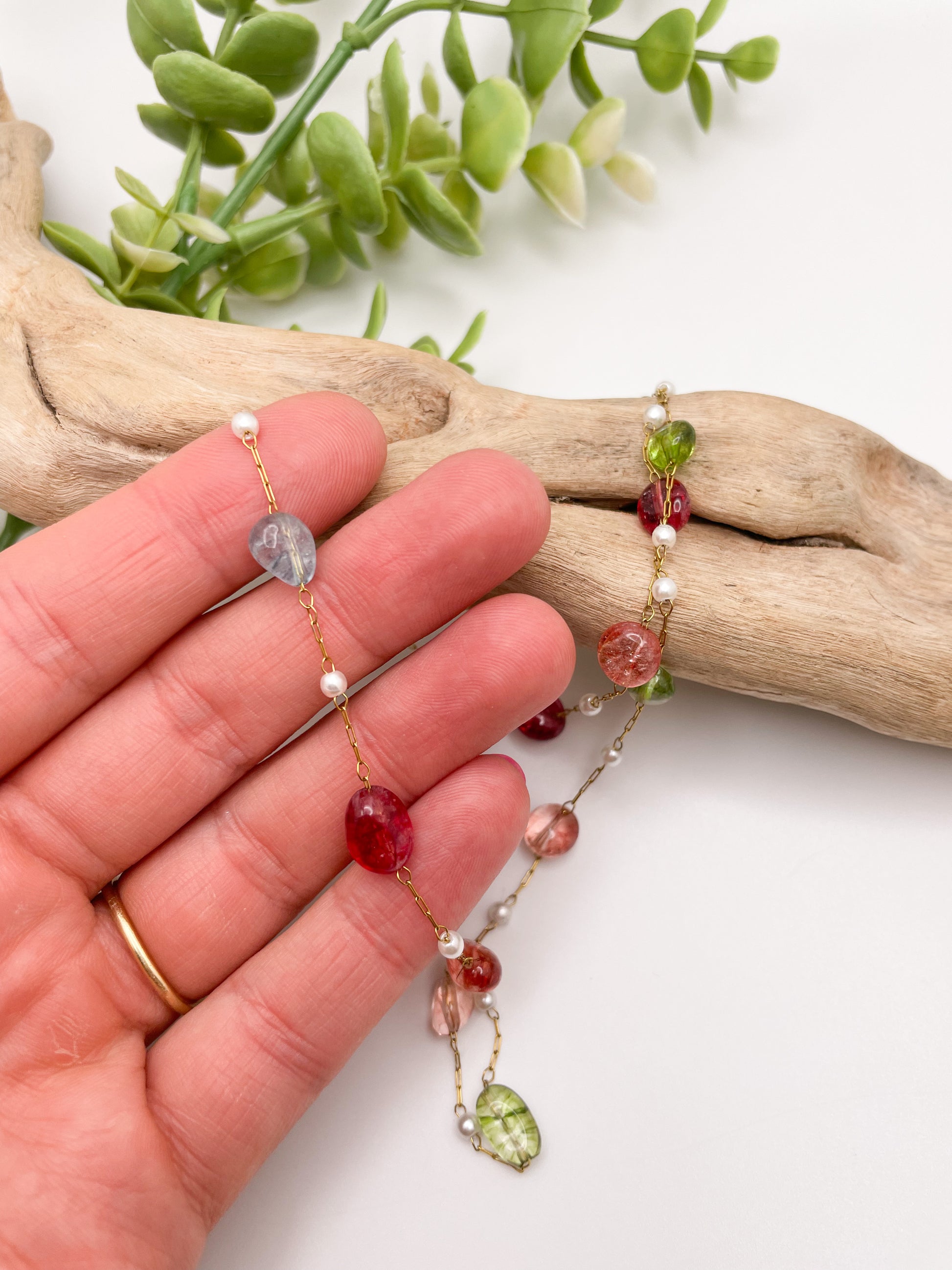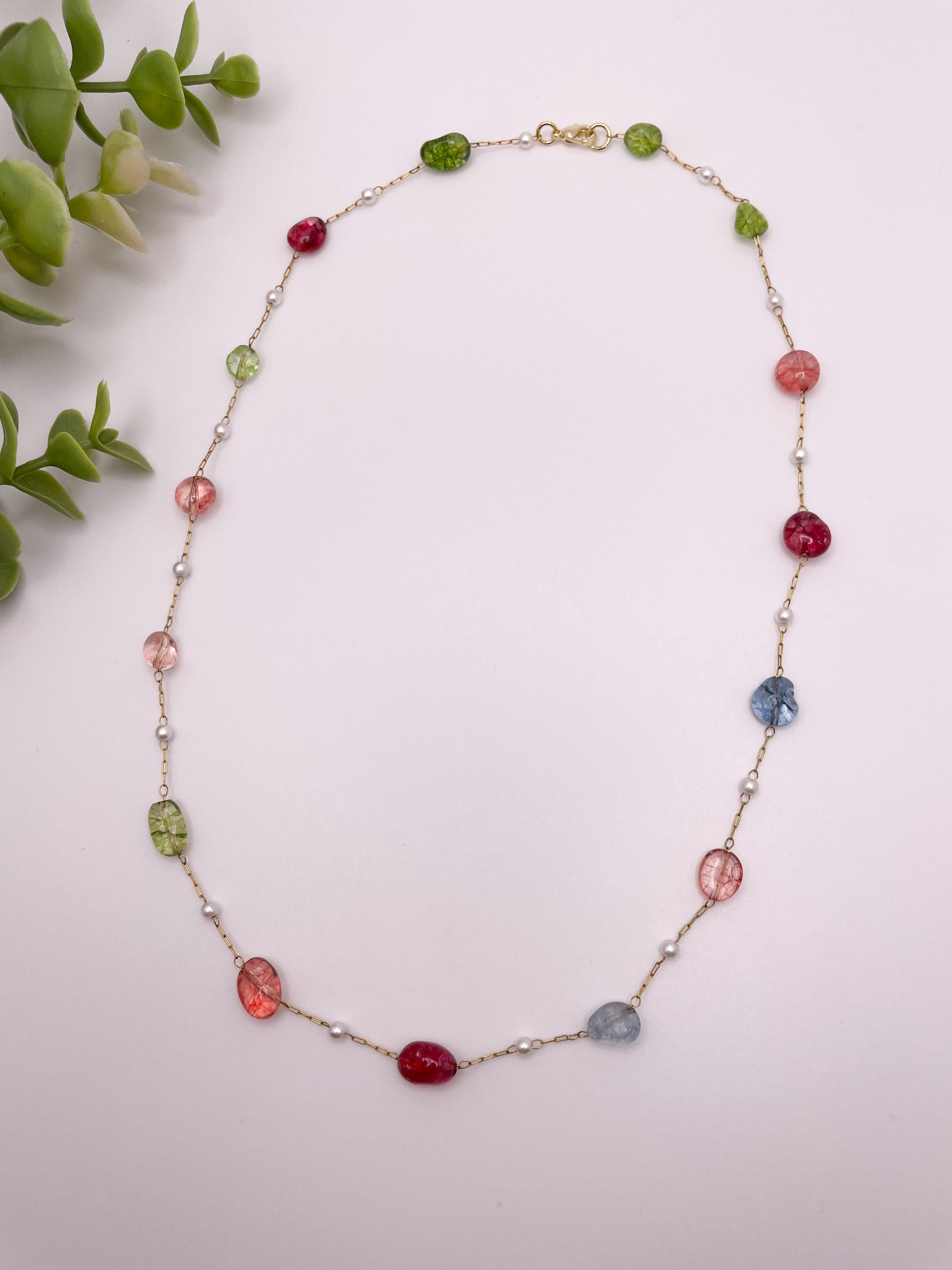 Non-tarnishing gold filled necklace, 18 inches. Let the Harmony gold necklace remind you of the beauty in balance and unity. With delicate pearls and colorful glass beads in different shapes, sizes, and colors, this necklace symbolizes the beauty of diversity and the harmonious flow of life. Just as these unique beads come together to create something stunning, you too are a blend of experiences, strengths, and qualities that make you beautifully whole. The gentle gold chain carries each bead with grace, just as you carry your inner peace and strength through every moment. Wear Harmony as a reflection of your ability to find calm amidst the chaos, joy in the little things, and balance in all aspects of life. Every time you wear it, let it remind you that you are radiant, strong, and beautifully all because of the little things that make you different!