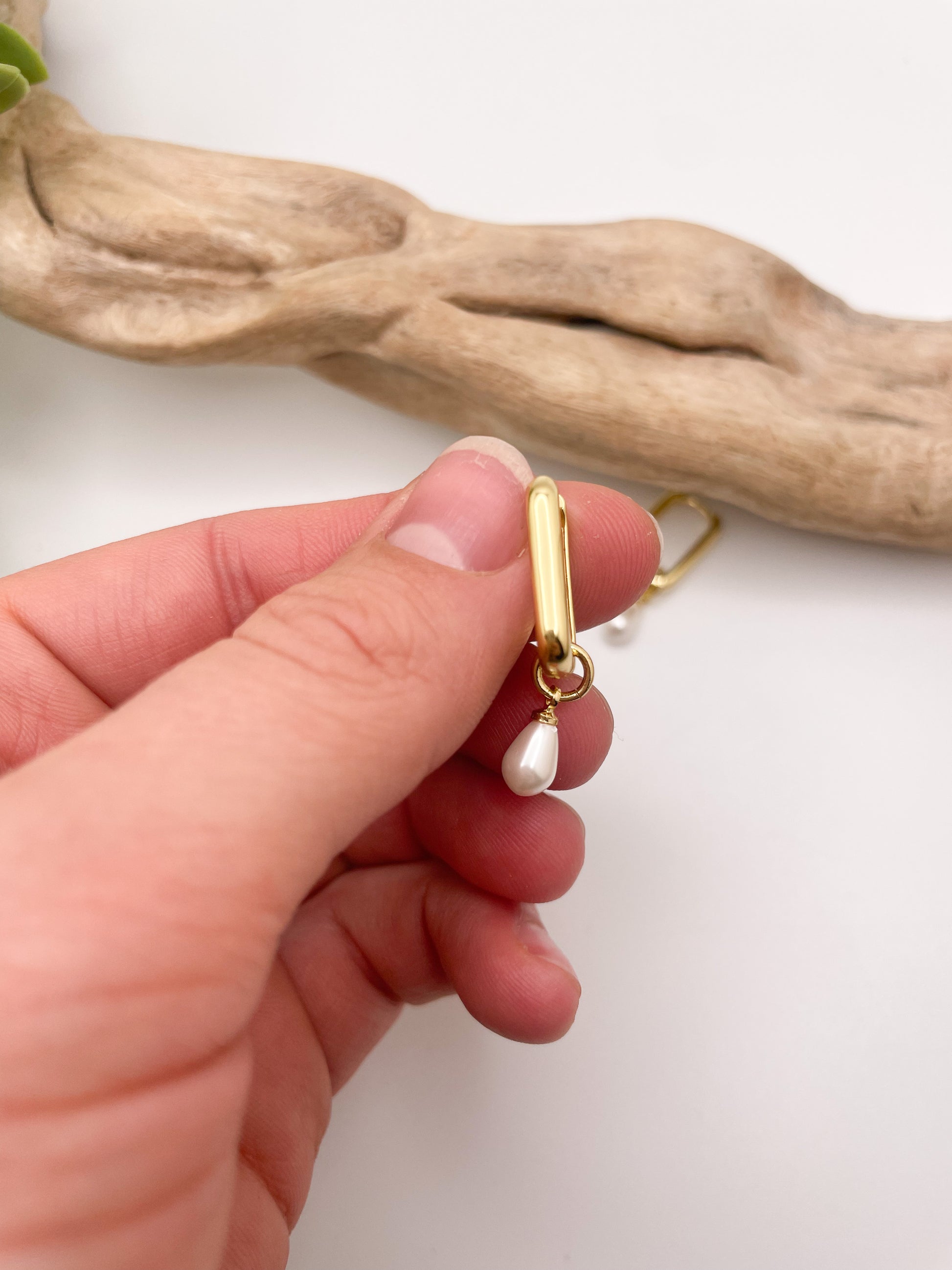Gold filled long huggie earring with removable pearl charm. The most elegant and luxurious earring that will become a staple and elevate any outfit. You deserve to feel lux!