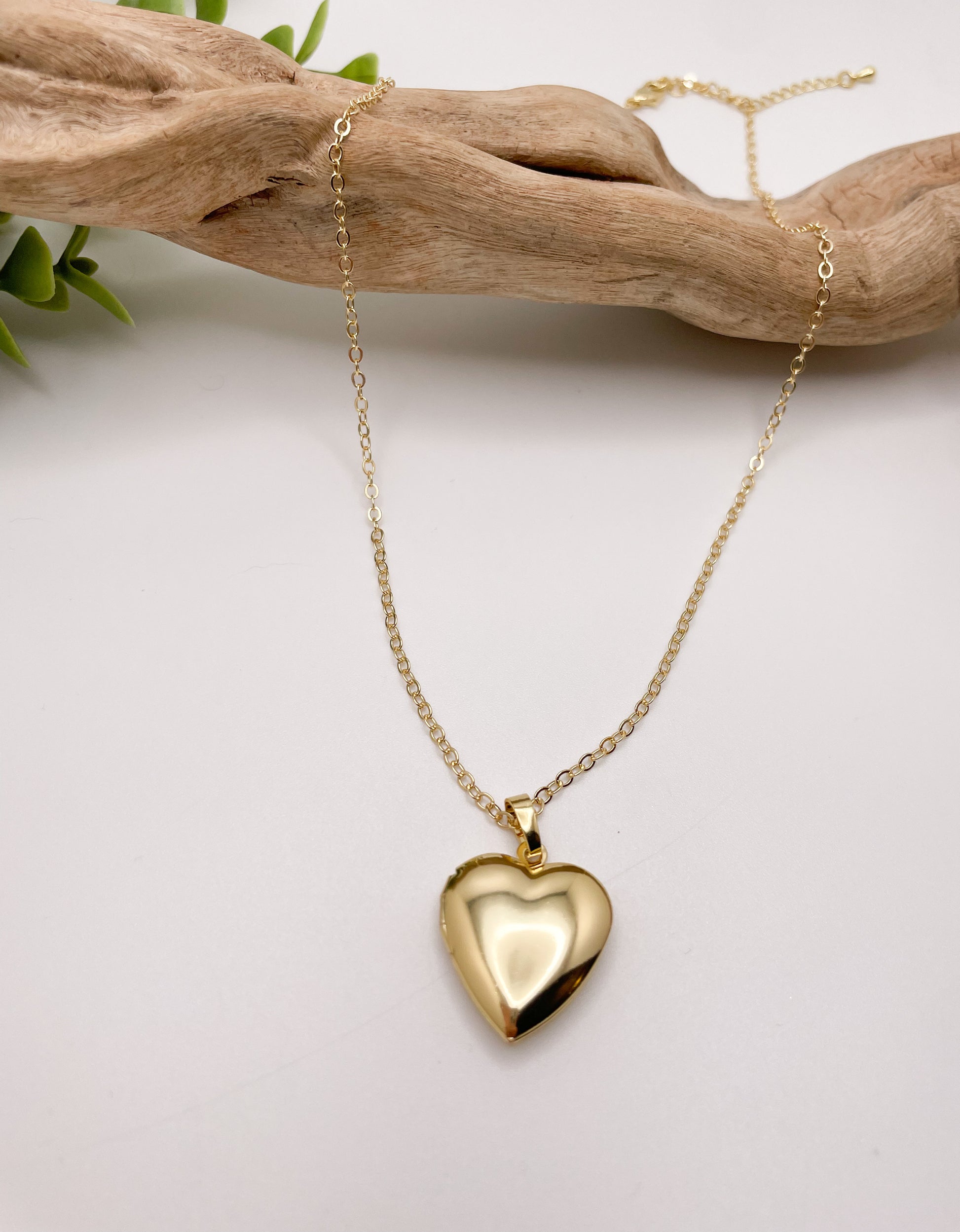 Meet the Heart Locket — gold filled 18 inch chain and 2 inch extender w/ gold filled heart locket pendant. Your little haven right around your neck. This charming gold locket isn't just pretty; it's your personal space for those tiny treasures that mean the world. Tuck away photos of your favorite people or moments inside and keep the warmth of their love close, wherever you go.